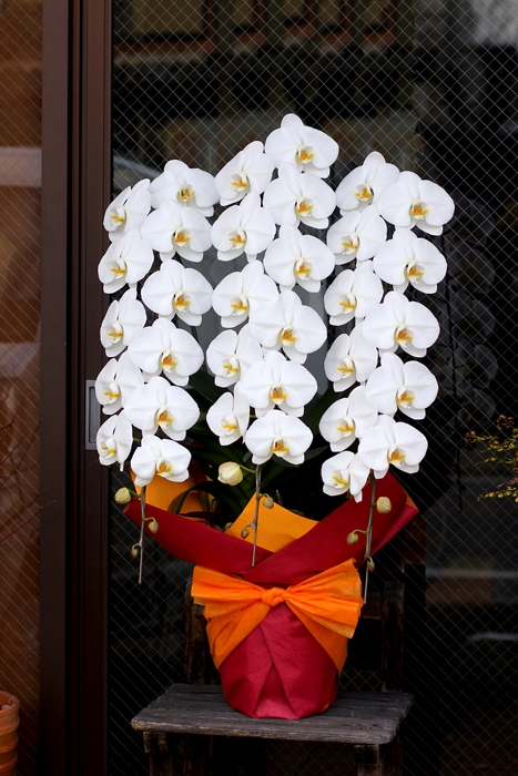 名古屋胡蝶蘭の商品の中でこの価格帯のものは非常にご注文が多いです。従来は5本立のみをご用意しておりましたが、多くのお客様のリクエストがあり3本立の長い花列のこの商品を新たに採用させていただきました。